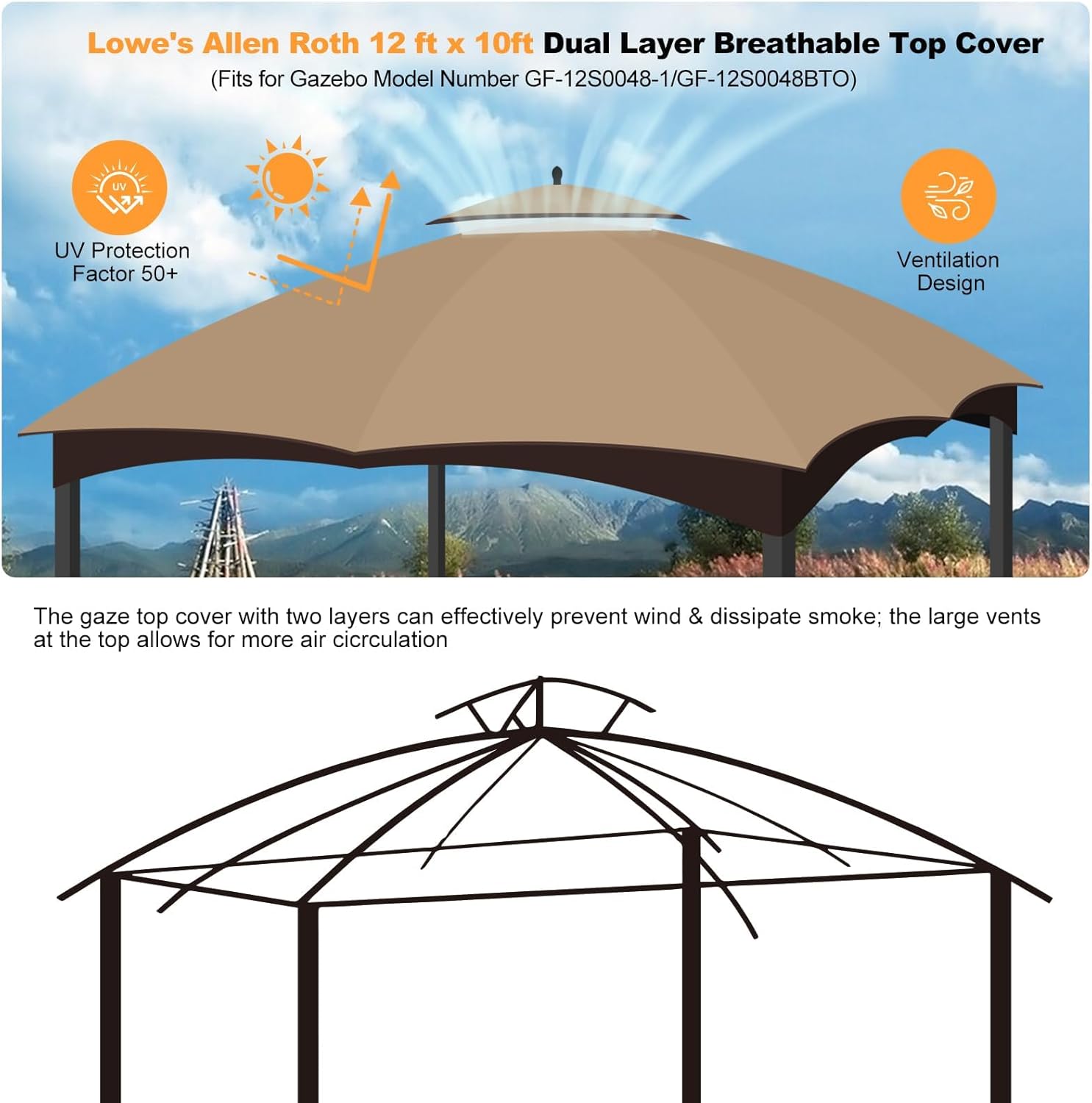 Gazebo CanopyPerfect Replacement Canopy Top for Lowe’s Allen Roth: Designed to fit 2012-2016 Lowe’s Allen Roth 10×12 gazebo (Model #GF-12S004B-1, #A101004104, #A101004105). Please confirm your gazebo frame before purchasing.