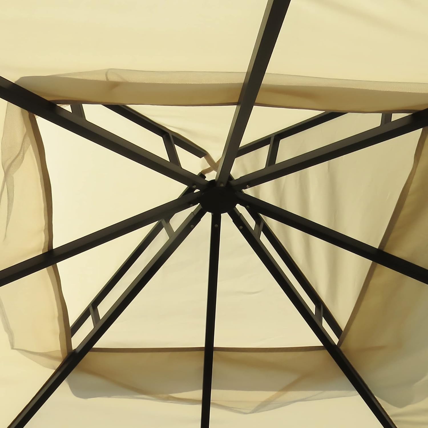 Outdoor GazeboDouble Vented Roof: The two-tier roof allows comfortable airflow while shading the sun. The design redirects wind, ensuring the outdoor gazebo stands stable and safe.