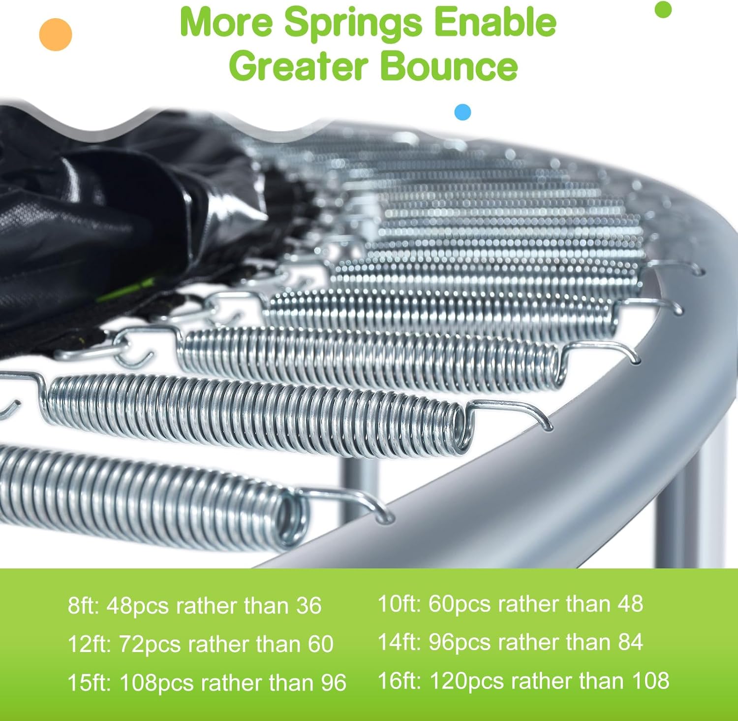 For outdoor trampolines, this model is designed with a heavy-duty hot-dip galvanized steel frame to ensure durability and rust resistance, lasting up to 5 times longer than traditional frames. The W-shaped legs and dual steel joints ensure a solid base, even in strong winds, offering exceptional stability for the whole family.
