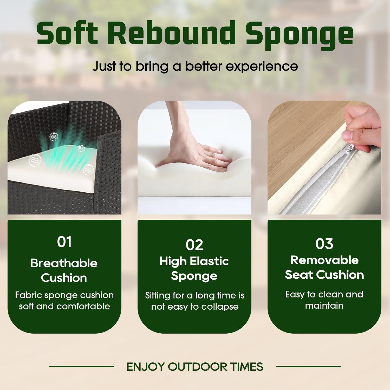 This set is perfect for compact outdoor spaces such as balconies, patios, or small gardens. With its modular design, the pieces can be rearranged to suit your layout and needs, offering flexibility and style.