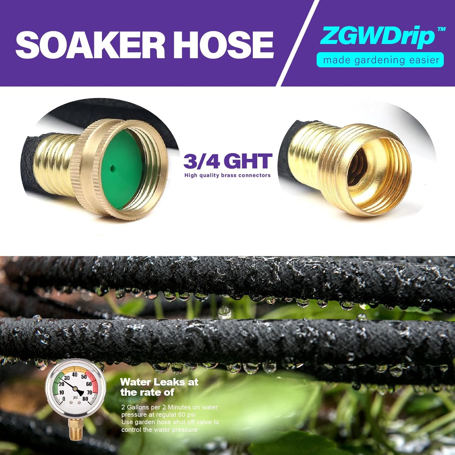 Easy Installation: The hose is equipped with 3/4″ solid brass connectors, ensuring a secure and leak-free connection to your faucet. Simply hook it up, and you’re ready to go, providing your plants with efficient, consistent watering.